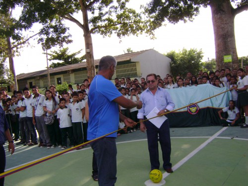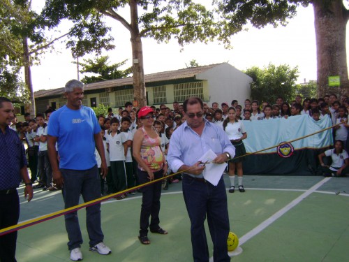 24.11.2010 15:31En el marco de la jornada de socialización de experiencias significativas de la Intitución Educativa San Vicente de Paul, fue inaugurada la cancha de microfútbol de la Institución. El acto fue presidido por nuestro distinguido rector Dr. Alvaro Del Toro y acompañado por toda la comunidad. En el acto tuvimos la presencia de nuestro principal benefactor, el Sr. Alfaro, propietario de la tienda institucional; además disfrutamos del juego final intercursos.